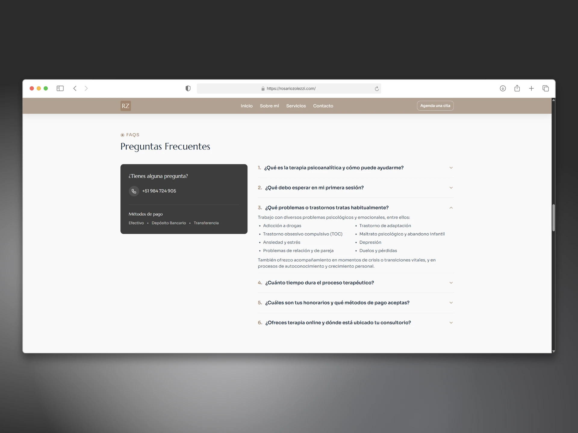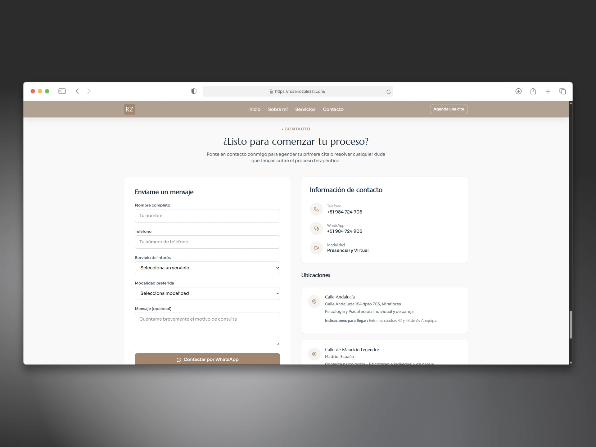 Página web para psicóloga peruana especializada en terapia individual y pareja.