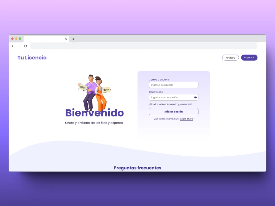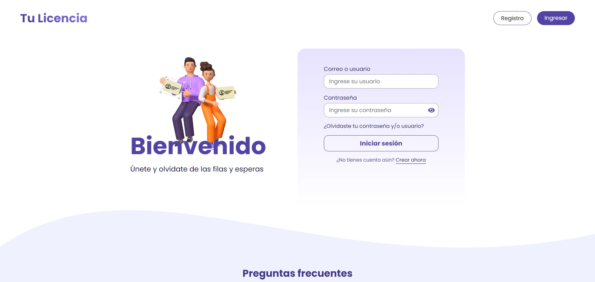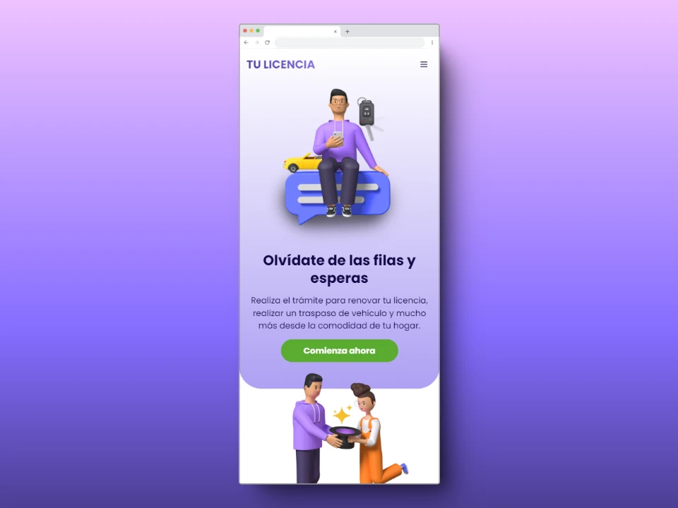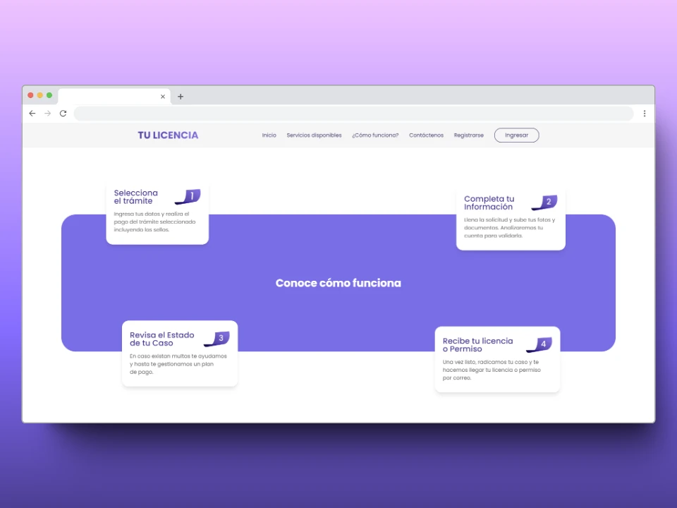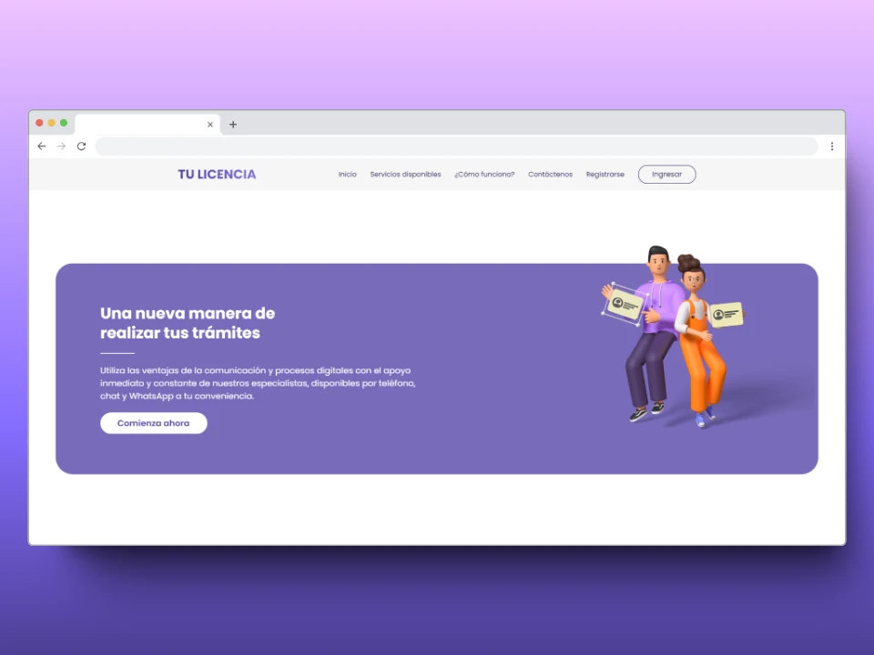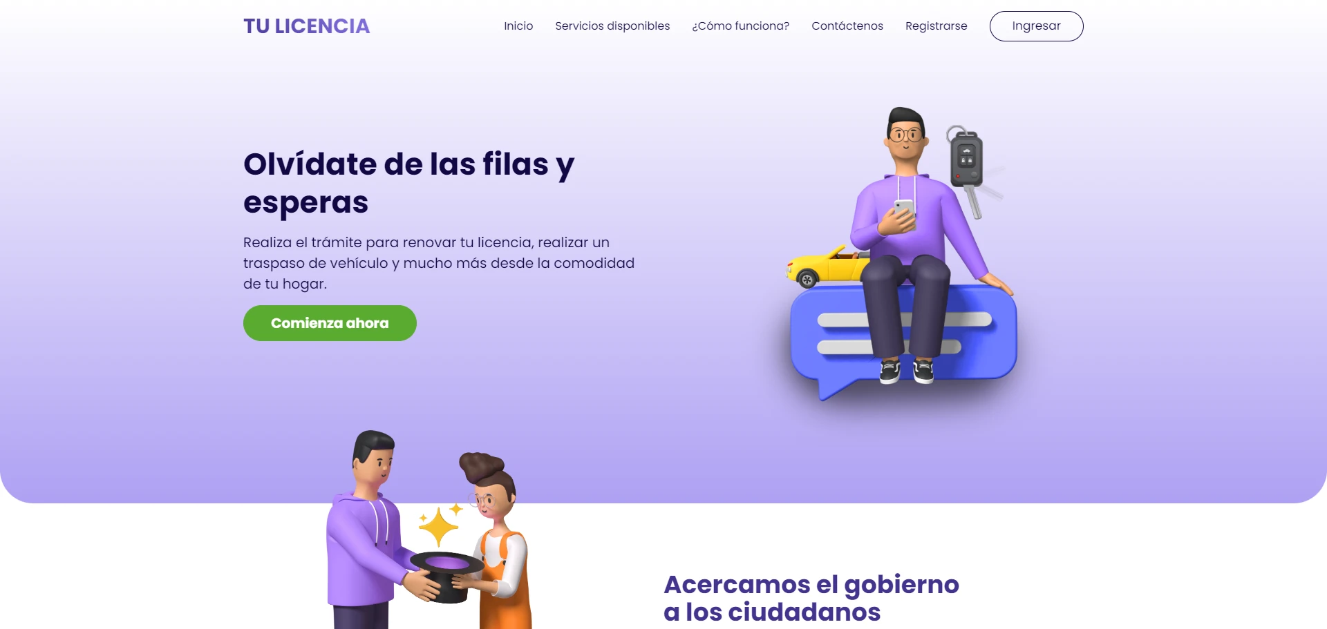 Landing page para sistema de gestiones de licencias en Puerto Rico.